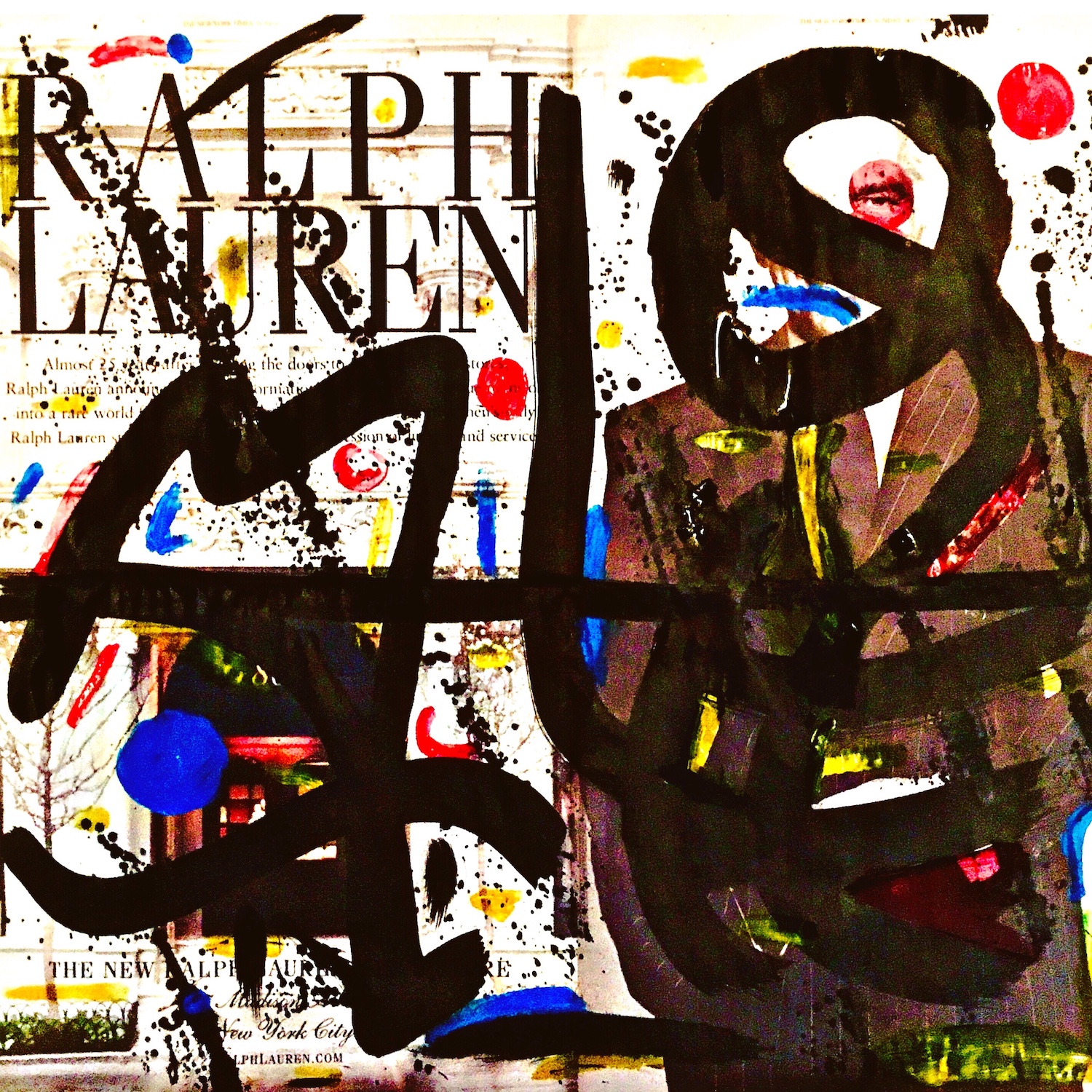 Mixed media on newspaper paper (The New York Times). Ralph Lauren ad.