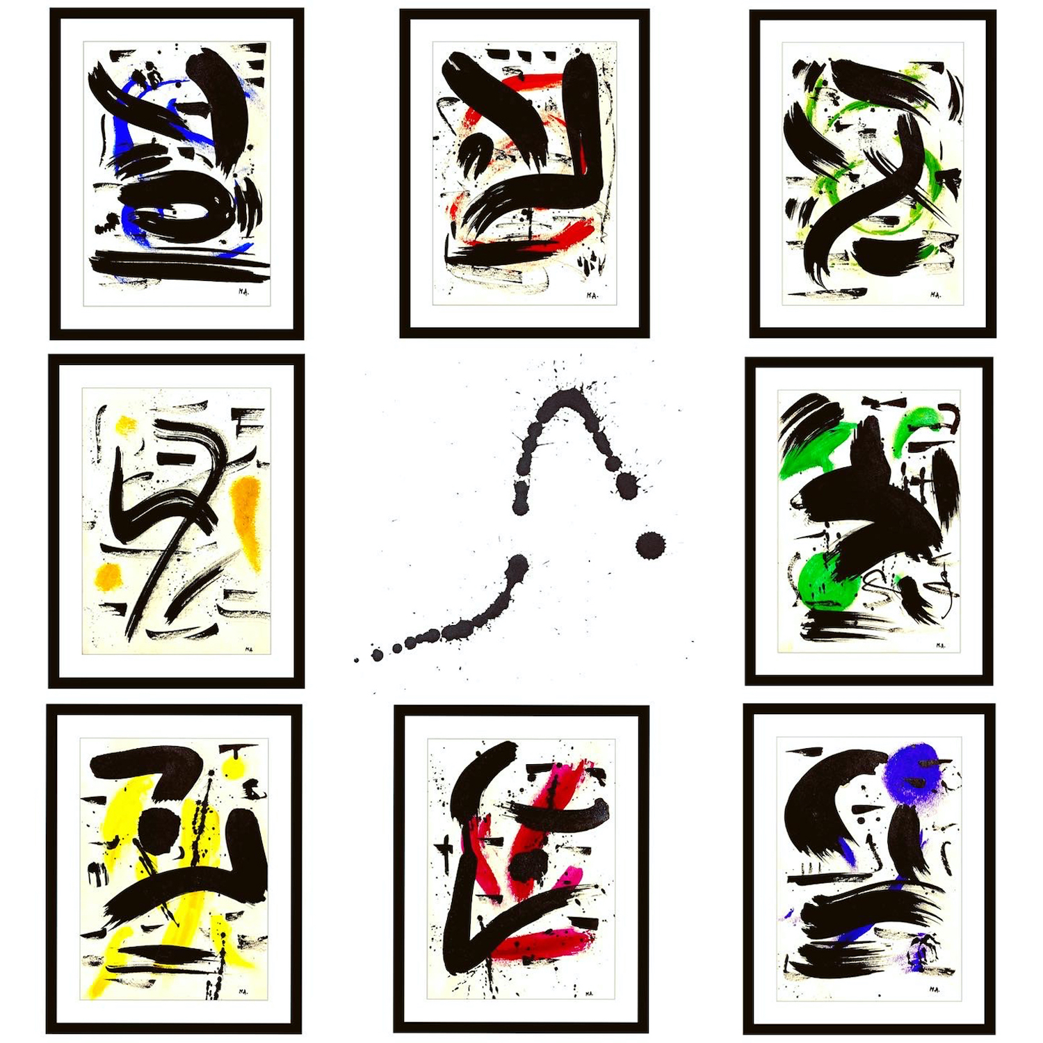 Mixed media on paper. Collection of 9 works.